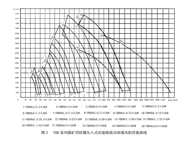 我公司生產(chǎn)的FBD系列礦用防爆壓入式對旋軸流局部通風(fēng)機,采用了這種技術(shù),可使風(fēng)機的運行噪聲不超過83dB(A),全壓效率達(dá)到88%,是一種理想的對旋式軸流通風(fēng)機。