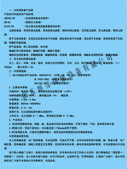 各類水處理設(shè)備及化工防腐設(shè)備