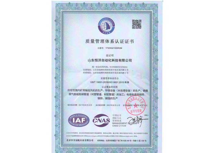 質量管理體系認證證書